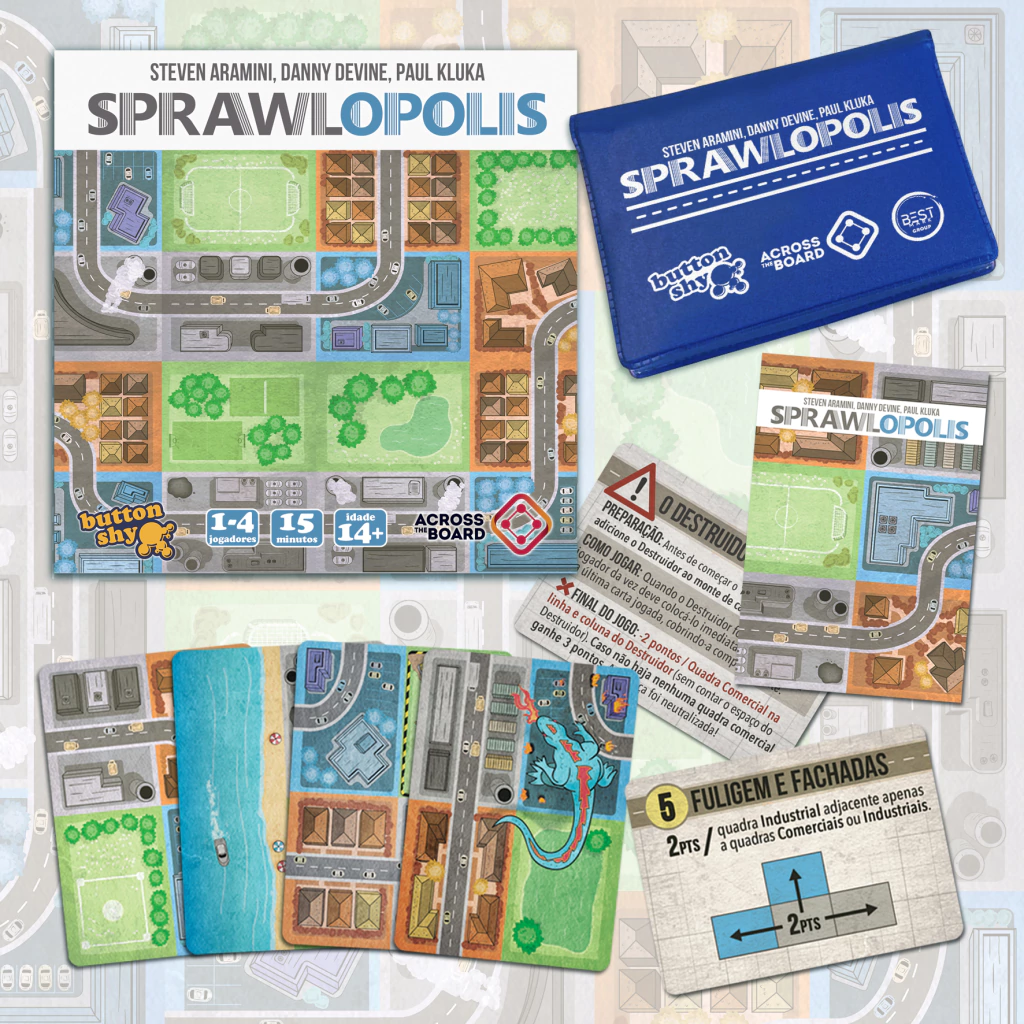 Em Sprawlopolis, 1-4 jogadores trabalham juntos para construir uma nova cidade a partir do zero. Usando apenas 18 cartas e um sistema de pontuação variável, o jogo nunca é o mesmo duas vezes. Em cada turno, os jogadores irão jogar uma carta da mão para a cidade em crescimento, tentando marcar o maior número de pontos possível. Os jogadores terão que se comunicar e planejar sem revelar suas próprias cartas, a fim de desenvolver mais eficientemente grandes áreas em cada um dos quatro tipos de zona. Cuidado, porém, a cidade odeia pagar pela manutenção da estrada para que cada estrada lhe custe pontos no final. Quando todas as cartas foram colocadas, o jogo termina e o jogador vê se eles encontraram a pontuação mínima gerada dinamicamente para o seu jogo. Você pode atender às demandas dos funcionários, trabalhar com seus colegas planejadores e construir a maravilha urbana definitiva? É hora de descobrir!